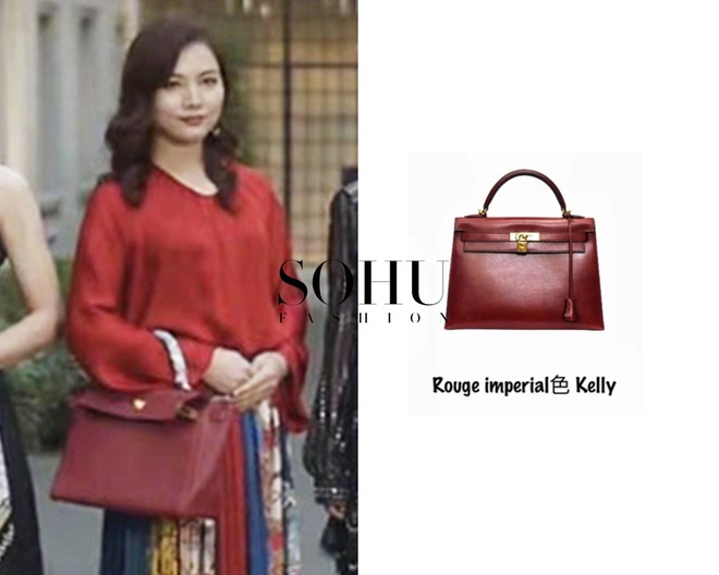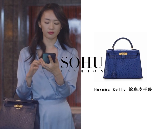 Nhận thấy phải sắm túi Hermès mới có thể gia nhập hội phu nhân sang chảnh, Cố Giai dùng hết số tiền mình có để mua hẳn thiết kế phiên bản giới hạn. Đó là một chiếc Hermès Kelly da đà điểu màu xanh nước biển đậm. Ngoài đời thực, mẫu túi này không hề dễ mua, trị giá tới gần 25.000 USD. Ảnh: Sohu.
