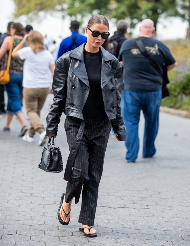 1. Dép xỏ ngón: Theo InStyle, dép xỏ ngón đang dần trở thành xu hướng được các tín đồ thời trang ưa chuộng. Chúng không còn được coi như một phụ kiện giản dị, kém sành điệu. Hiện nay, dép xỏ ngón được làm bằng da. Trang này khuyên bạn nên phối nó với quần có hoạ tiết hoặc váy maxi màu mè. Ảnh: Christian Vierig.