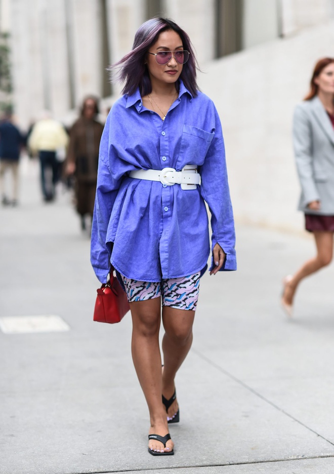 2. Thắt lưng: Gần đây, nhiều fashionista chọn mặc áo rộng và đeo thêm thắt lưng. Cách phối đồ này giúp tôn lên vóc dáng người mặc đồng thời làm tăng vẻ thời thượng. Thắt lưng cũng góp phần khiến cho các mẫu quần bớt đơn điệu. Ảnh: Daniel Zuchnick.