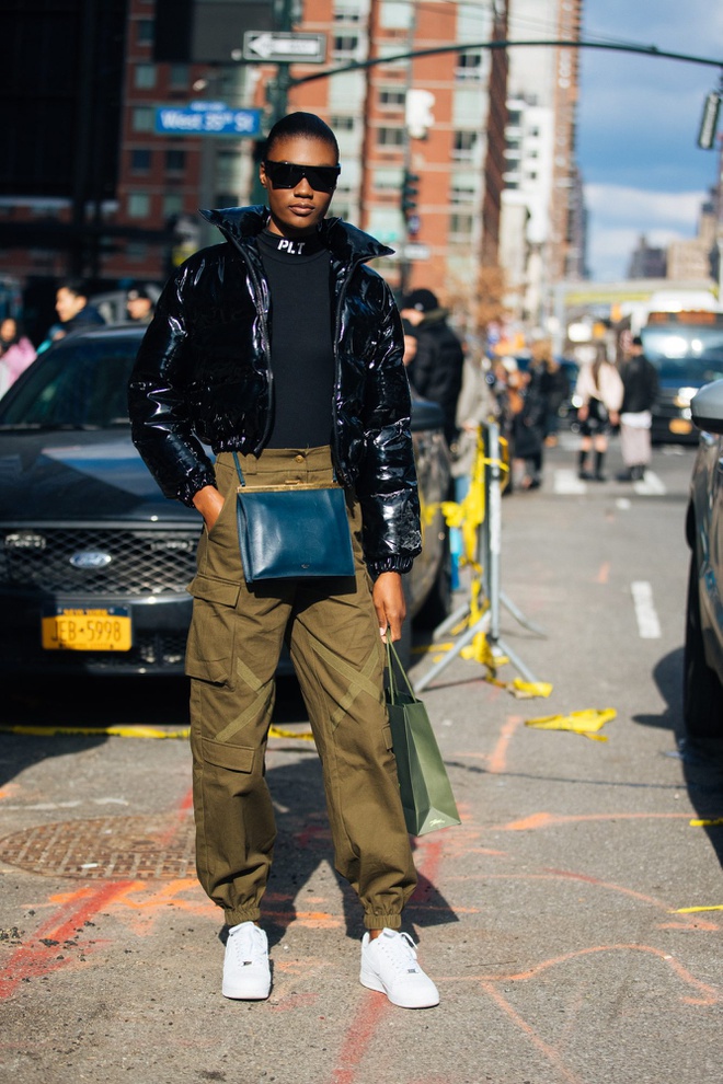 7. Quần cargo: Loại quần trên có thể kết hợp được với cả giày thể thao và giày cao gót. Áo khoác dáng thô, quần cargo và sneakers sẽ là công thức lý tưởng của những nàng chuộng phong cách cá tính. Bên cạnh đó, giày cao gót và áo len bó sát mặc cùng mẫu quần này cũng phù hợp không kém. Ảnh: Melodie Jeng.